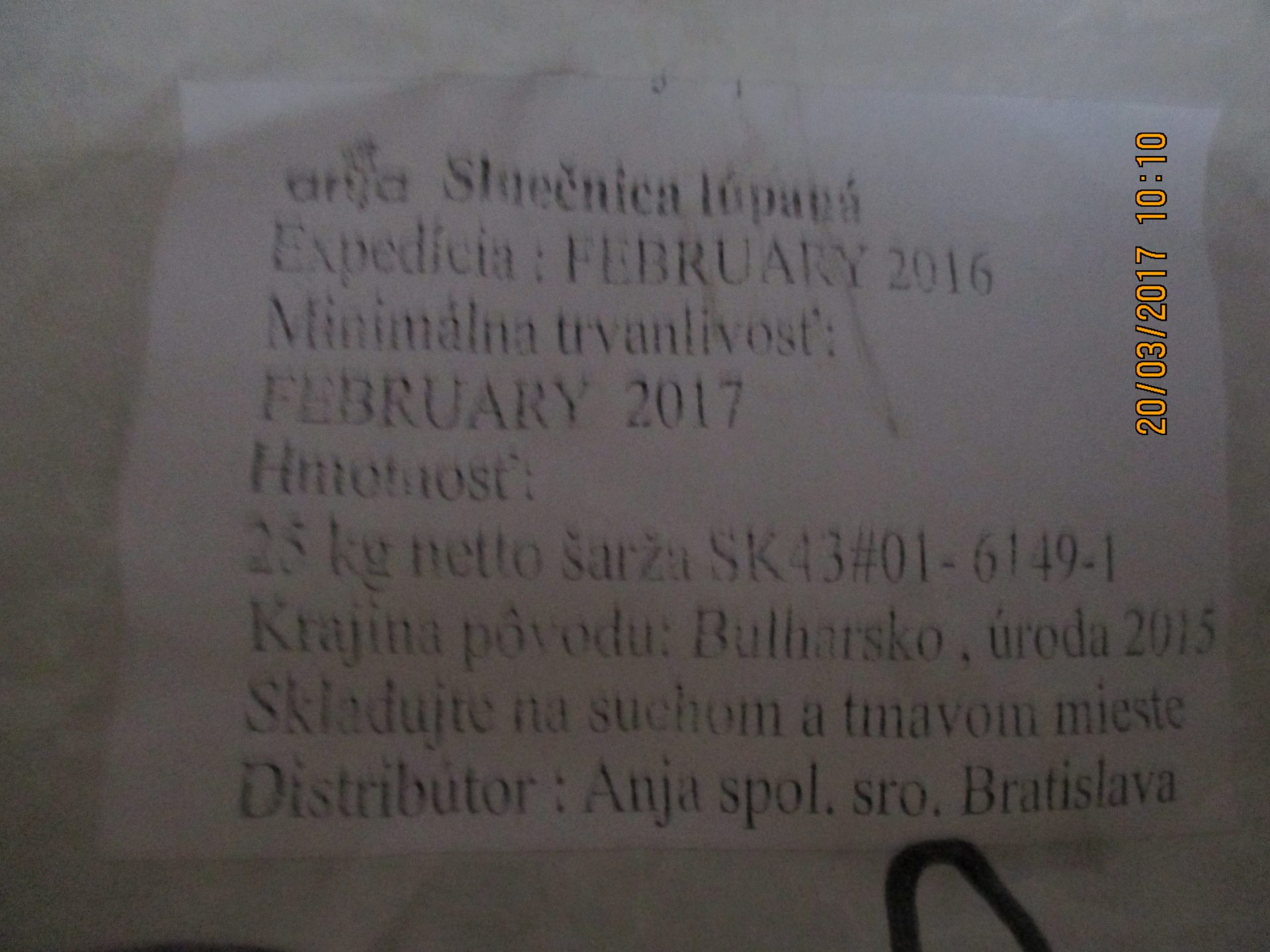| 2017-03-2020.03.2017 | TV003592017TV00 | Návrh na správne konanie - opatrenie | Hygiena budov, hygiena prevádzkarne/Nevyhovujúce suroviny, výrobky, tovar - Iné |