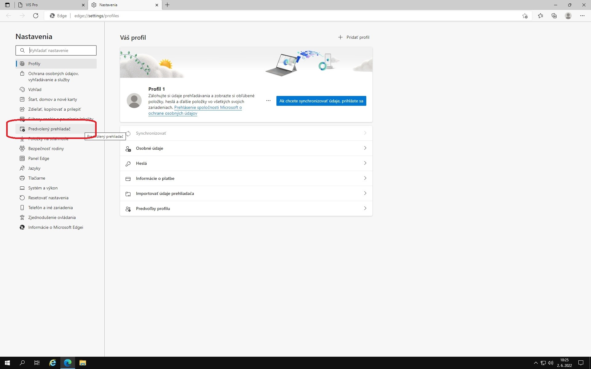 Nastavenie prehliadača Microsoft Edge
